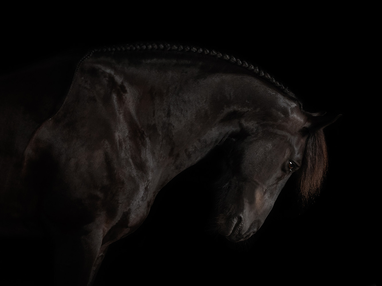 Ein Bild muss in sich stimmig sein und leben, funktionieren. Hier ist mir der umsichtige und einfühlsame Umgang mit dem Pferd besonders wichtig, so gelingen auch bei unsicheren Pferden tolle Bilder. Auch Bilder von Pferden in der Bewegung, vor schwarzem Hintergrund sind ausdrucksstark und zeigen die Eleganz eines Pferdes, dies erreicht man vorzugsweise und in bester Qualität mit einem Studioblitz. Diese Bilder sind sehr beliebt bei meinen Kunden.